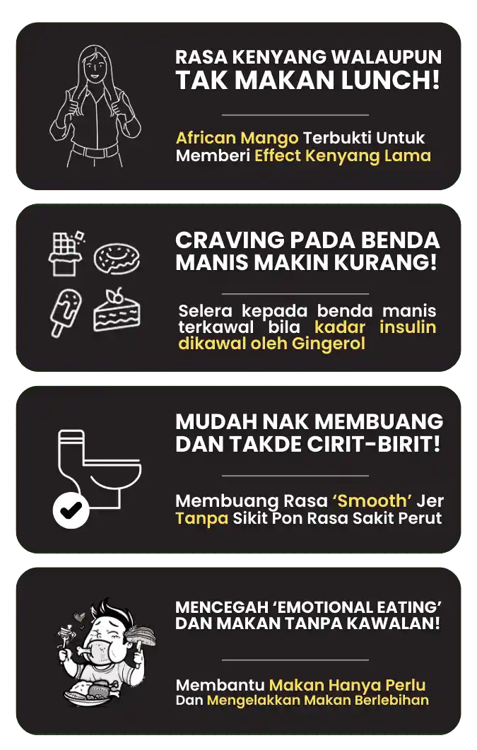 Takde kak sebab dalamni 100% bahan organik iaitu Halia Bara Afrika, African Mango dan Psyillium Husk
